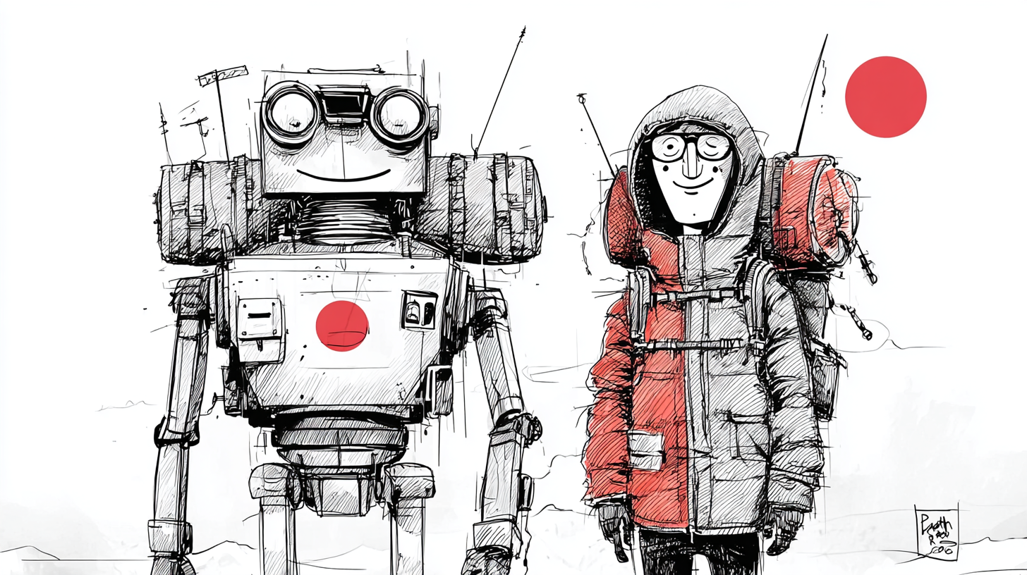Not a teacher. Not a coach. A Sherpa — the oldest model for this kind of relationship there is. The Sherpa does not climb the mountain for you. It carries what you cannot carry alone, reads the terrain you don’t yet know how to read, and asks the question that makes you stop and see what you’ve been walking past. The machine reads the journal. The human does the interpreting. The machine asks what surprised you. The human sits with the answer and decides what it means.
