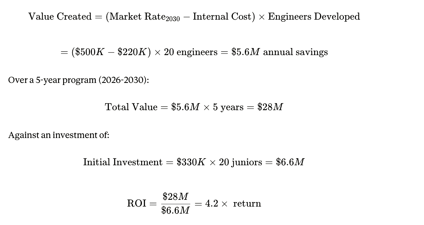 You’re not paying for Year 1 productivity. You’re buying a future senior at a 70% discount.